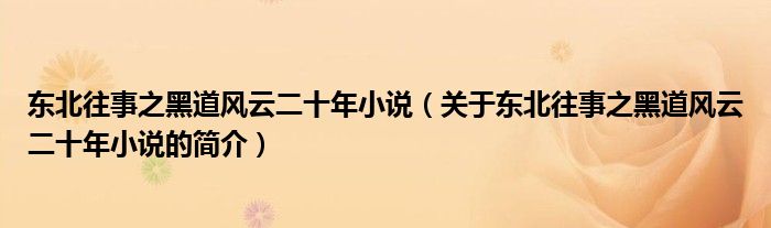 本文關于東北往事之黑道風云二十年小說的簡介就講解完畢,希望對大家有所幫助。
