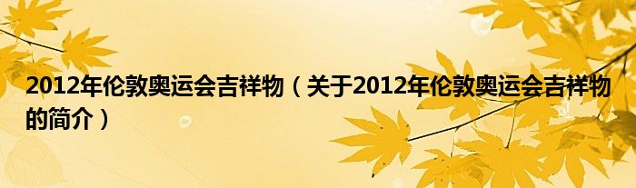 本文關于2012年倫敦奧運會吉祥物的簡介就講解完畢,希望對大家有所幫助。