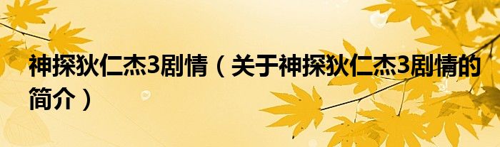 本文關于神探狄仁杰3劇情的簡介就講解完畢,希望對大家有所幫助。