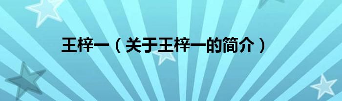 大家好,王梓一,關于王梓一的簡介很多人還不知道,現在讓我們一起來看看吧!