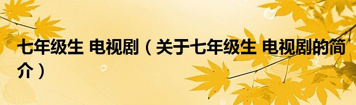本文關于七年級生 電視劇的簡介就講解完畢,希望對大家有所幫助。