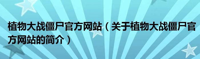 大家好,植物大戰僵尸官方網站,關于植物大戰僵尸官方網站的簡介很多人還不知道,現在讓我們一起來看看吧!