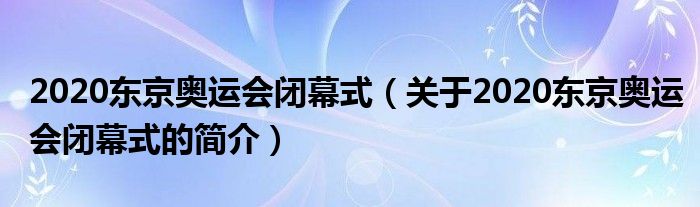 本文關于2020東京奧運會閉幕式的簡介就講解完畢,希望對大家有所幫助。