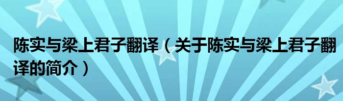 本文關(guān)于陳實與梁上君子翻譯的簡介就講解完畢,希望對大家有所幫助。