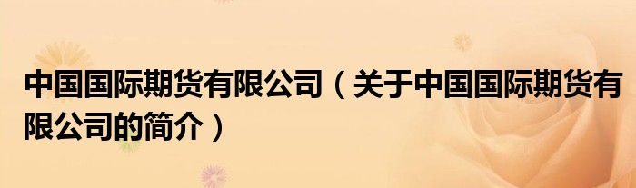本文關(guān)于中國國際期貨有限公司的簡介就講解完畢,希望對大家有所幫助。