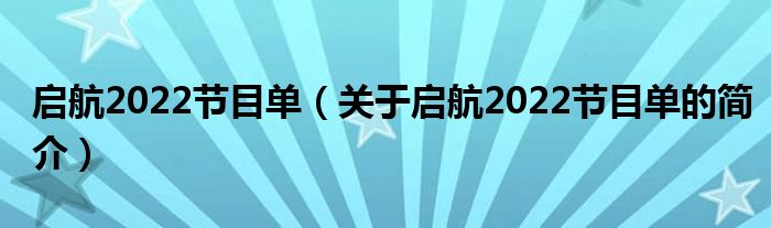 本文關于啟航2022節目單的簡介就講解完畢,希望對大家有所幫助。