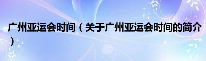 本文關于廣州亞運會時間的簡介就講解完畢,希望對大家有所幫助。