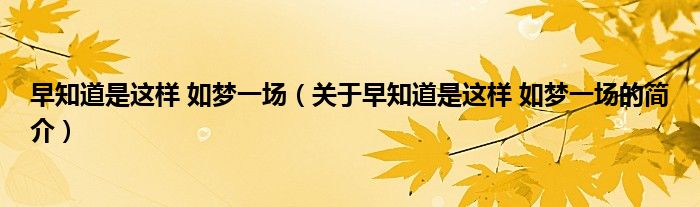 本文關于早知道是這樣 如夢一場的簡介就講解完畢,希望對大家有所幫助。