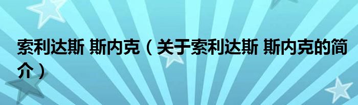 大家好,索利達斯 斯內克,關于索利達斯 斯內克的簡介很多人還不知道,現在讓我們一起來看看吧!
