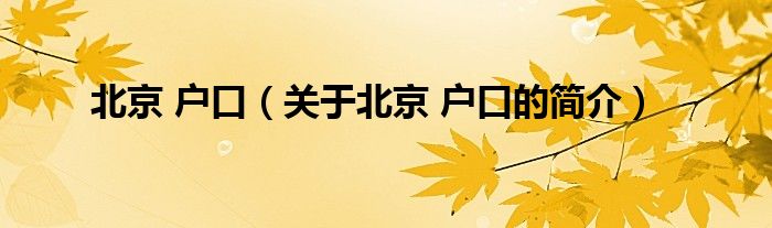 大家好,北京 戶口,關于北京 戶口的簡介很多人還不知道,現在讓我們一起來看看吧!