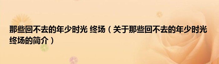 本文關于那些回不去的年少時光 終場的簡介就講解完畢,希望對大家有所幫助。