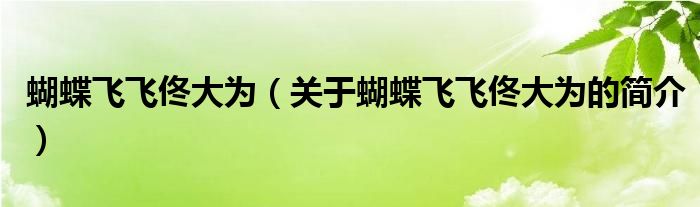 大家好,蝴蝶飛飛佟大為,關于蝴蝶飛飛佟大為的簡介很多人還不知道,現在讓我們一起來看看吧!