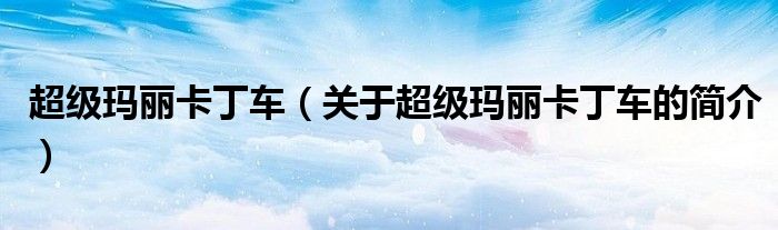 本文關于超級瑪麗卡丁車的簡介就講解完畢,希望對大家有所幫助。