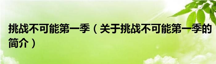 本文關于挑戰不可能第一季的簡介就講解完畢,希望對大家有所幫助。