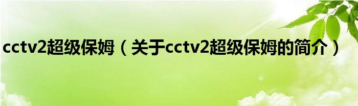 本文關于cctv2超級保姆的簡介就講解完畢,希望對大家有所幫助。