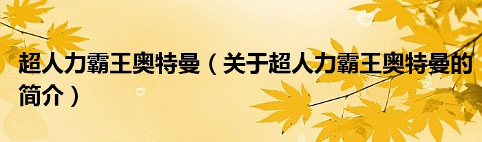 本文關于超人力霸王奧特曼的簡介就講解完畢,希望對大家有所幫助。