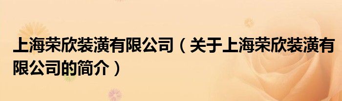 本文關于上海榮欣裝潢有限公司的簡介就講解完畢,希望對大家有所幫助。
