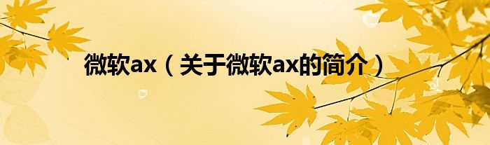 大家好,微軟ax,關于微軟ax的簡介很多人還不知道,現在讓我們一起來看看吧!
