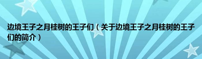 本文關(guān)于邊境王子之月桂樹的王子們的簡介就講解完畢,希望對大家有所幫助。