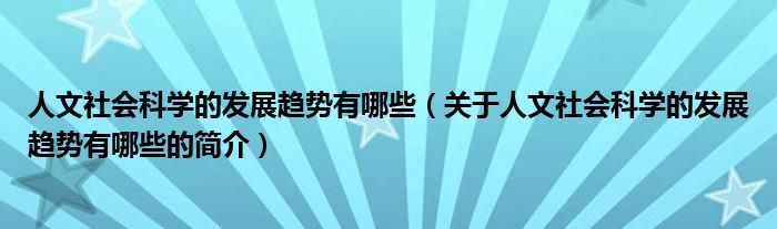 本文關于人文社會科學的發展趨勢有哪些的簡介就講解完畢,希望對大家有所幫助。