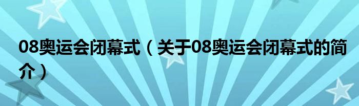 本文關于08奧運會閉幕式的簡介就講解完畢,希望對大家有所幫助。