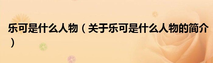 大家好,樂可是什么人物,關(guān)于樂可是什么人物的簡介很多人還不知道,現(xiàn)在讓我們一起來看看吧!