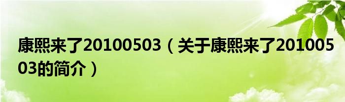 大家好,康熙來了20100503,關于康熙來了20100503的簡介很多人還不知道,現在讓我們一起來看看吧!