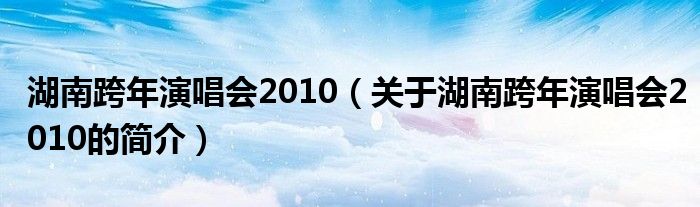 本文關(guān)于湖南跨年演唱會(huì)2010的簡介就講解完畢,希望對(duì)大家有所幫助。