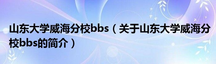 本文關于山東大學威海分校bbs的簡介就講解完畢,希望對大家有所幫助。