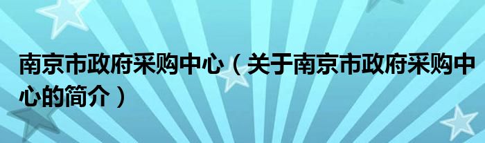 本文關于南京市政府采購中心的簡介就講解完畢,希望對大家有所幫助。