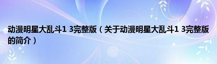 大家好,動漫明星大亂斗1 3完整版,關于動漫明星大亂斗1 3完整版的簡介很多人還不知道,現在讓我們一起來看看吧!