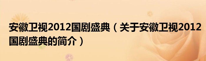 本文關(guān)于安徽衛(wèi)視2012國劇盛典的簡介就講解完畢,希望對大家有所幫助。