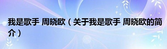 本文關(guān)于我是歌手 周曉歐的簡介就講解完畢,希望對(duì)大家有所幫助。