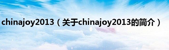 大家好,chinajoy2013,關(guān)于chinajoy2013的簡介很多人還不知道,現(xiàn)在讓我們一起來看看吧!