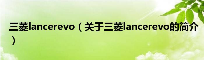本文關于三菱lancerevo的簡介就講解完畢,希望對大家有所幫助。