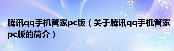 本文關于騰訊qq手機管家pc版的簡介就講解完畢,希望對大家有所幫助。