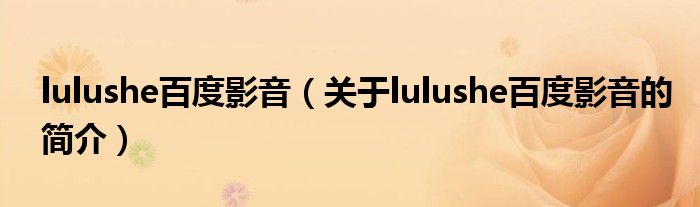 大家好,lulushe百度影音,關于lulushe百度影音的簡介很多人還不知道,現在讓我們一起來看看吧!