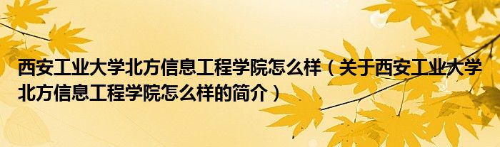 本文關(guān)于西安工業(yè)大學(xué)北方信息工程學(xué)院怎么樣的簡(jiǎn)介就講解完畢,希望對(duì)大家有所幫助。