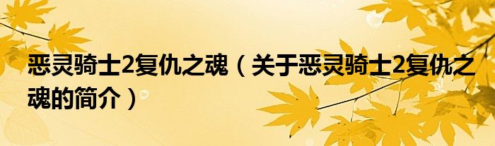 本文關(guān)于惡靈騎士2復(fù)仇之魂的簡介就講解完畢,希望對大家有所幫助。