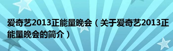 本文關于愛奇藝2013正能量晚會的簡介就講解完畢,希望對大家有所幫助。