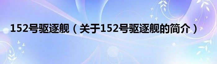本文關于152號驅逐艦的簡介就講解完畢,希望對大家有所幫助。