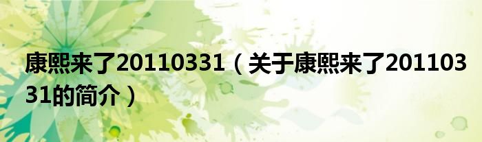 大家好,康熙來了20110331,關于康熙來了20110331的簡介很多人還不知道,現在讓我們一起來看看吧!