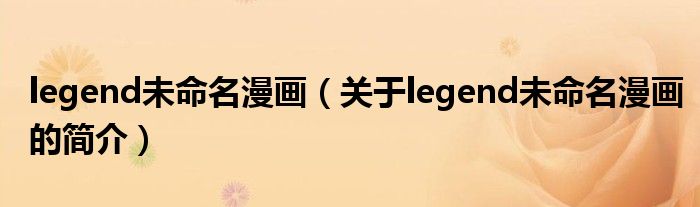 本文關(guān)于legend未命名漫畫的簡介就講解完畢,希望對大家有所幫助。