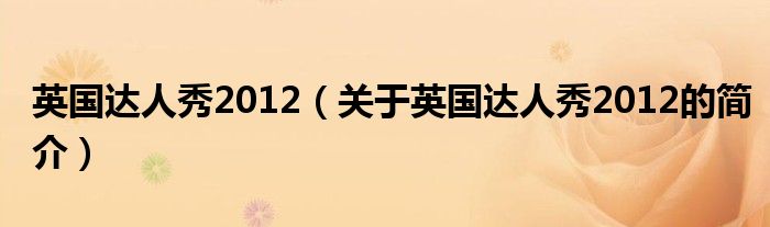 本文關于英國達人秀2012的簡介就講解完畢,希望對大家有所幫助。