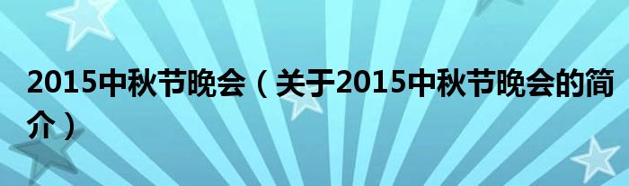 本文關于2015中秋節晚會的簡介就講解完畢,希望對大家有所幫助。