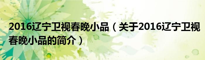 本文關于2016遼寧衛視春晚小品的簡介就講解完畢,希望對大家有所幫助。