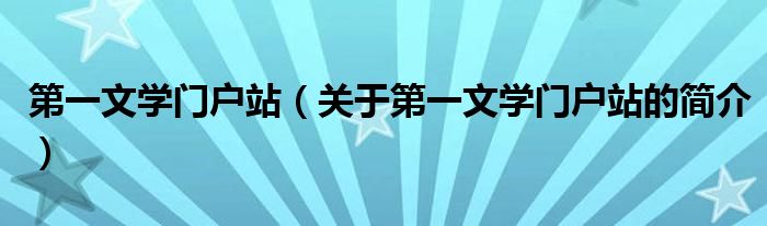 本文關于第一文學門戶站的簡介就講解完畢,希望對大家有所幫助。