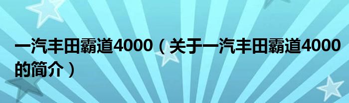 本文關于一汽豐田霸道4000的簡介就講解完畢,希望對大家有所幫助。