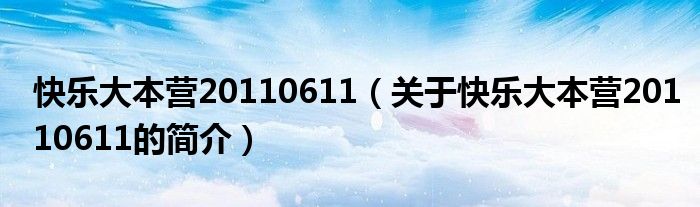 大家好,快樂大本營20110611,關于快樂大本營20110611的簡介很多人還不知道,現在讓我們一起來看看吧!