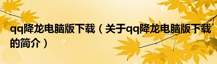 本文關于qq降龍電腦版下載的簡介就講解完畢,希望對大家有所幫助。